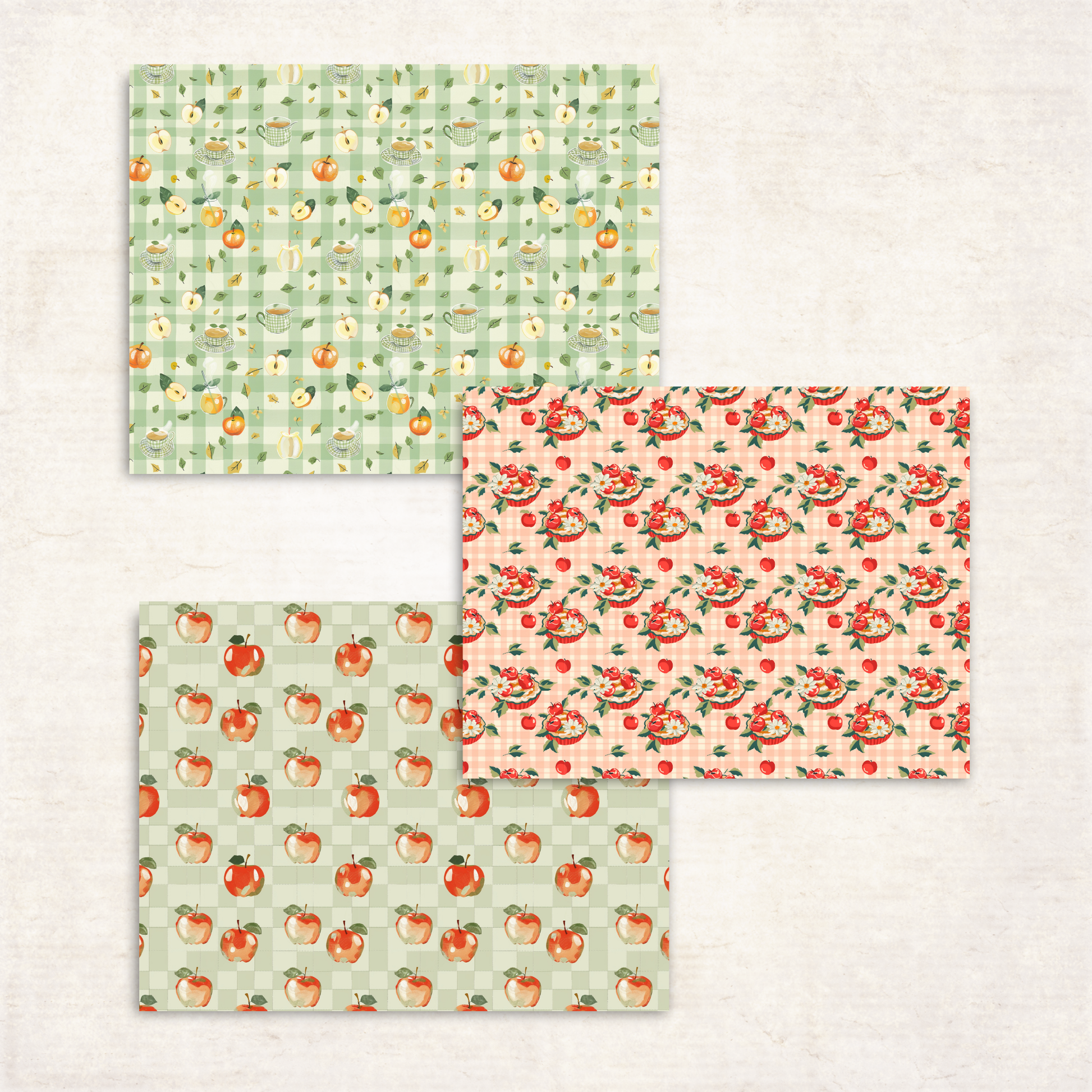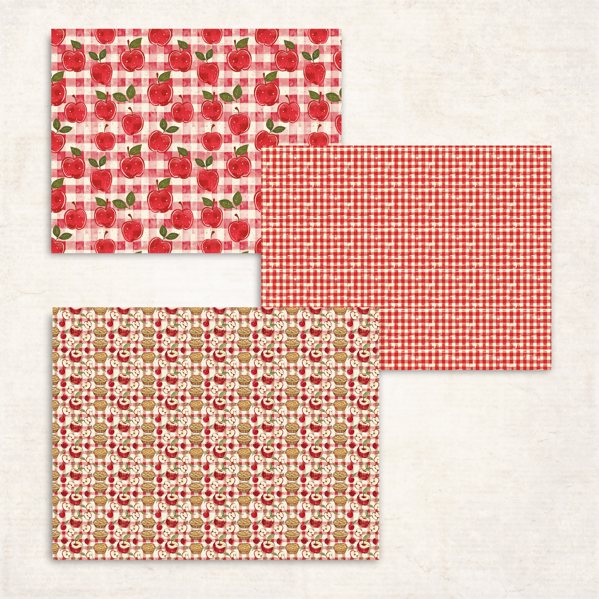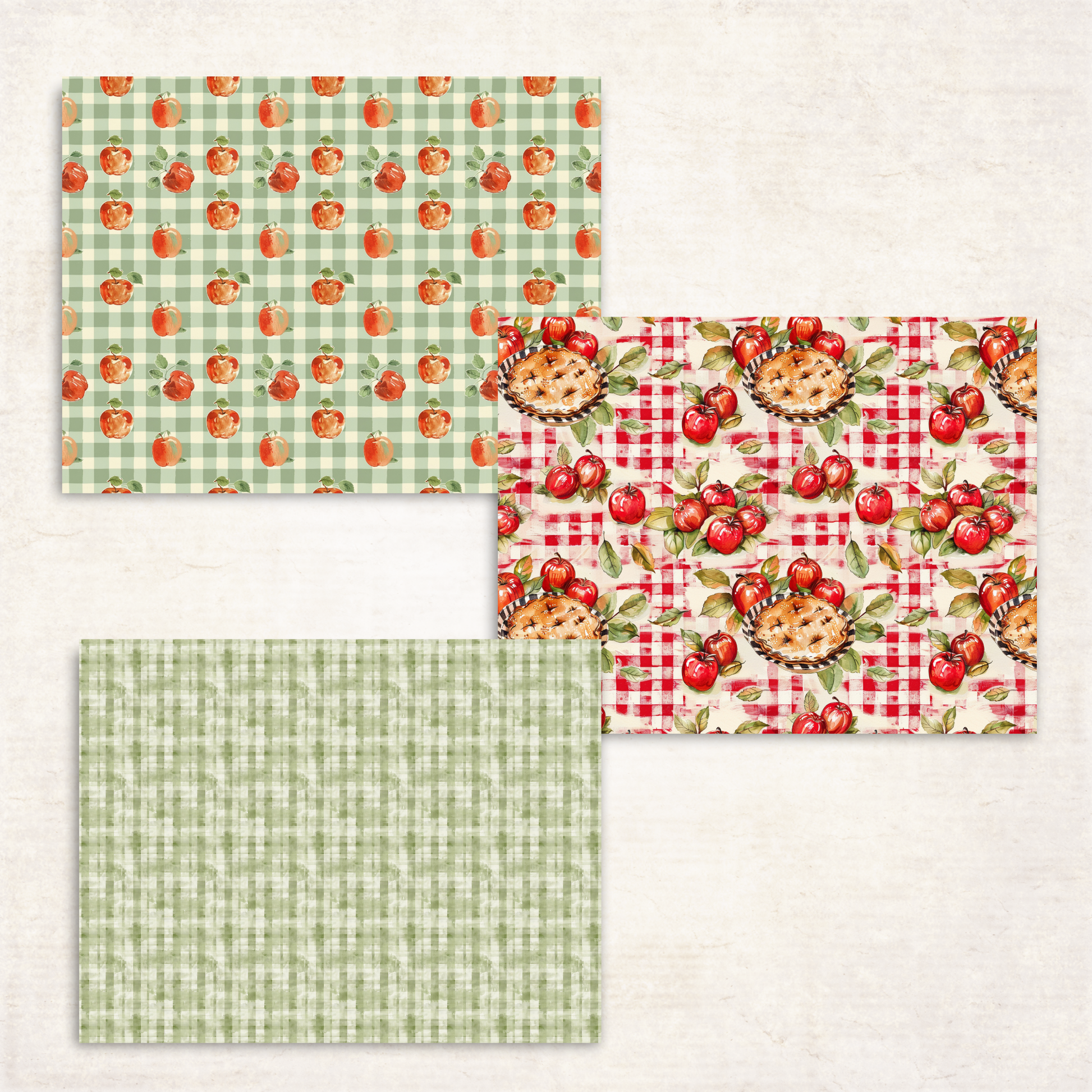 Apple Harvest Scrapbook Papers – Printable Fall Gingham & Apple Pie Patterns for Junk Journals