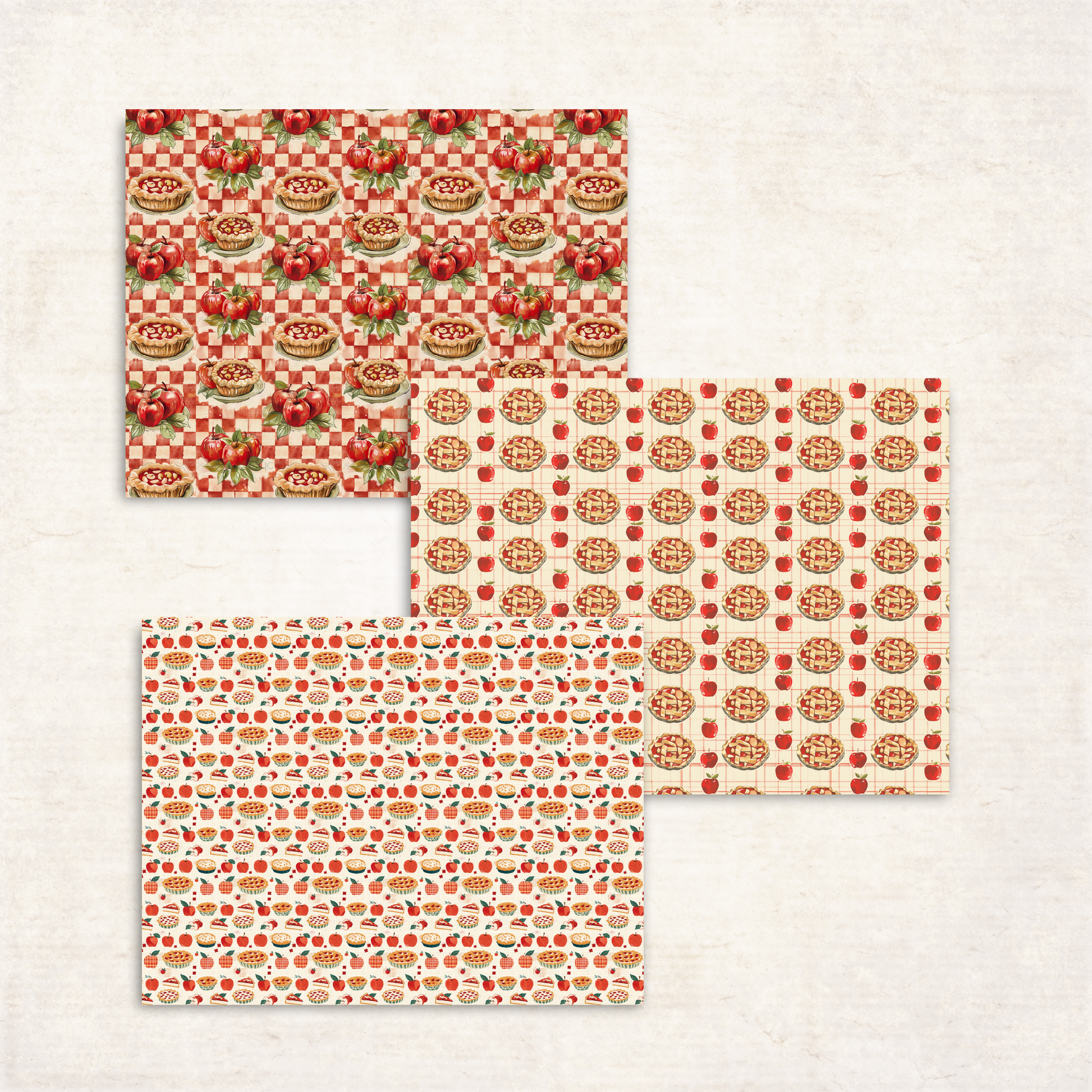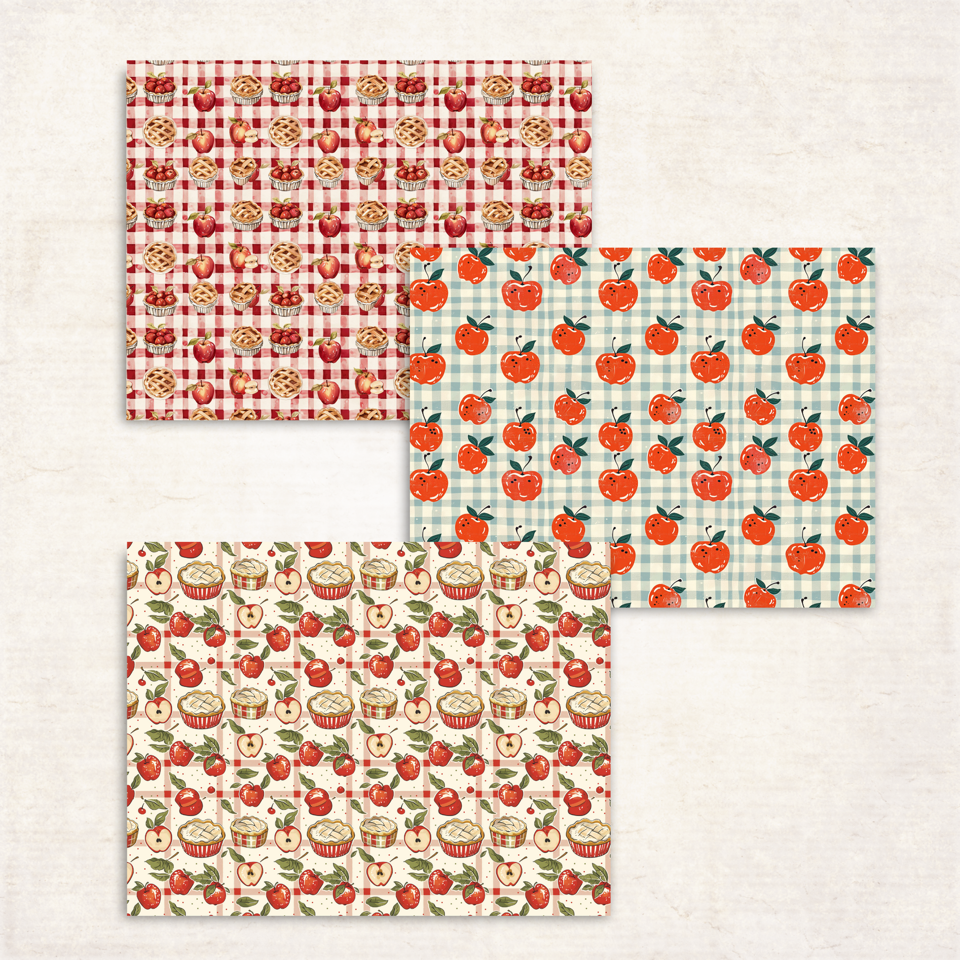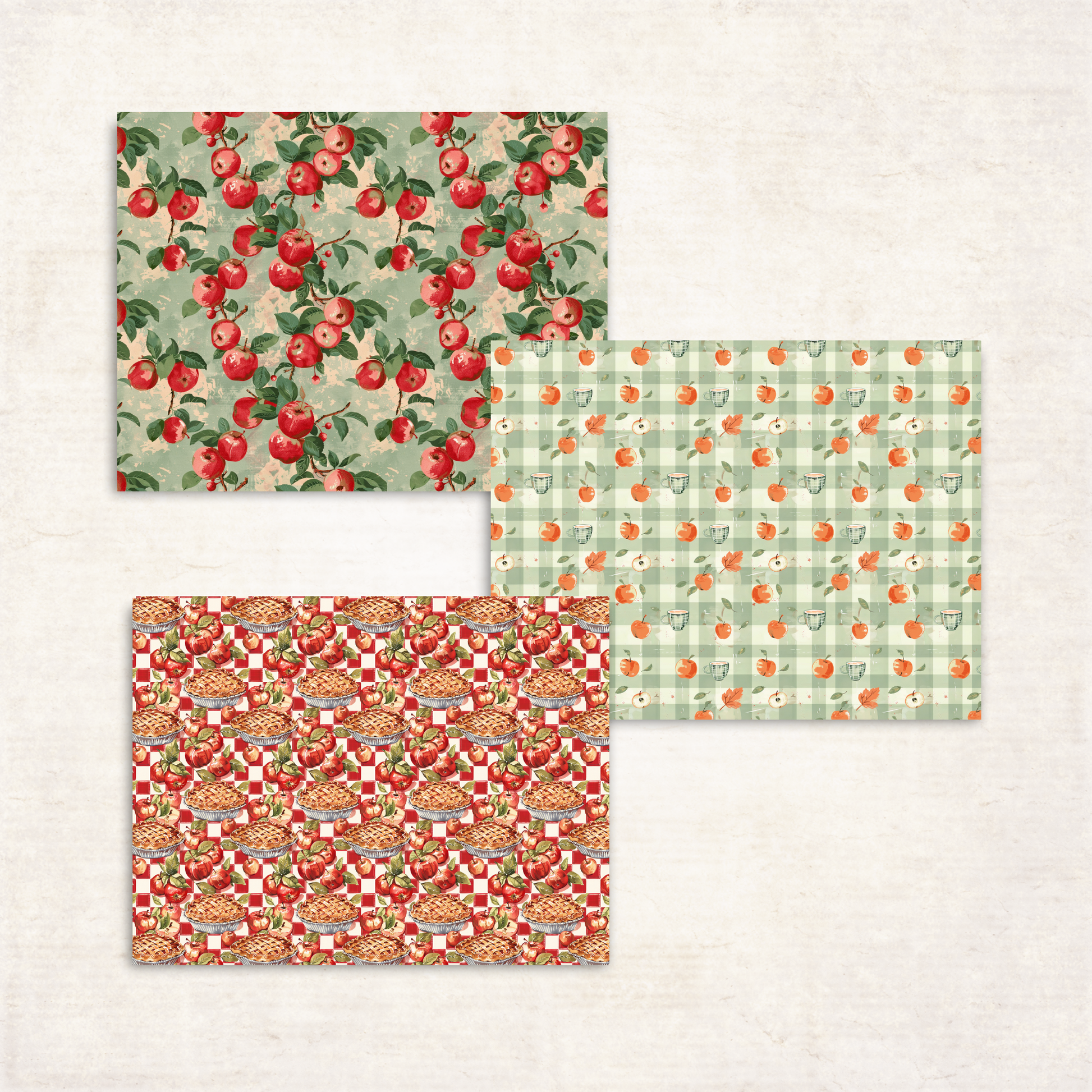 Apple Harvest Scrapbook Papers – Printable Fall Gingham & Apple Pie Patterns for Junk Journals