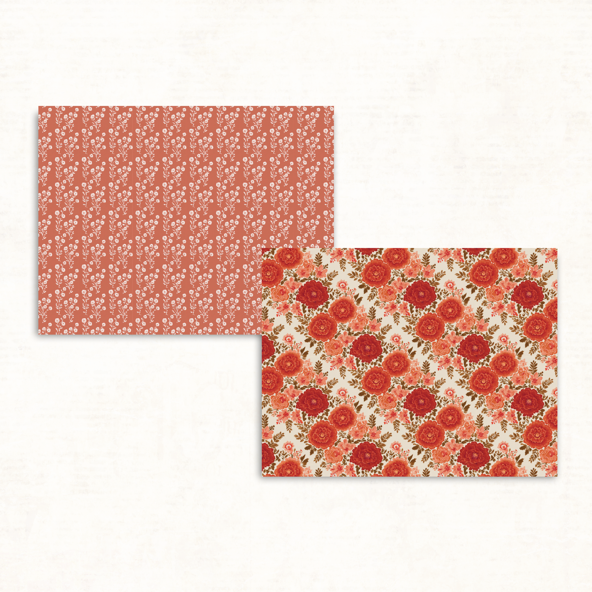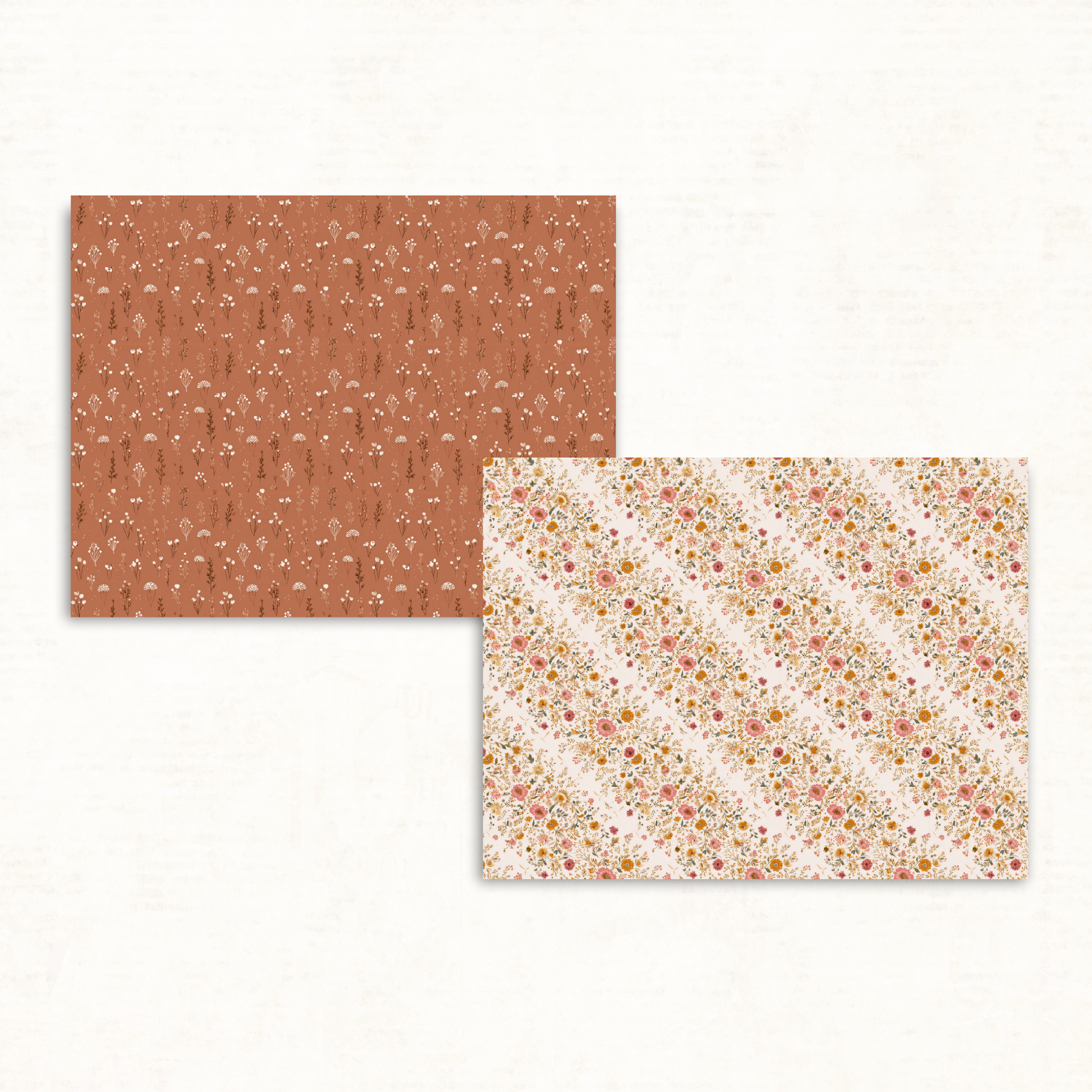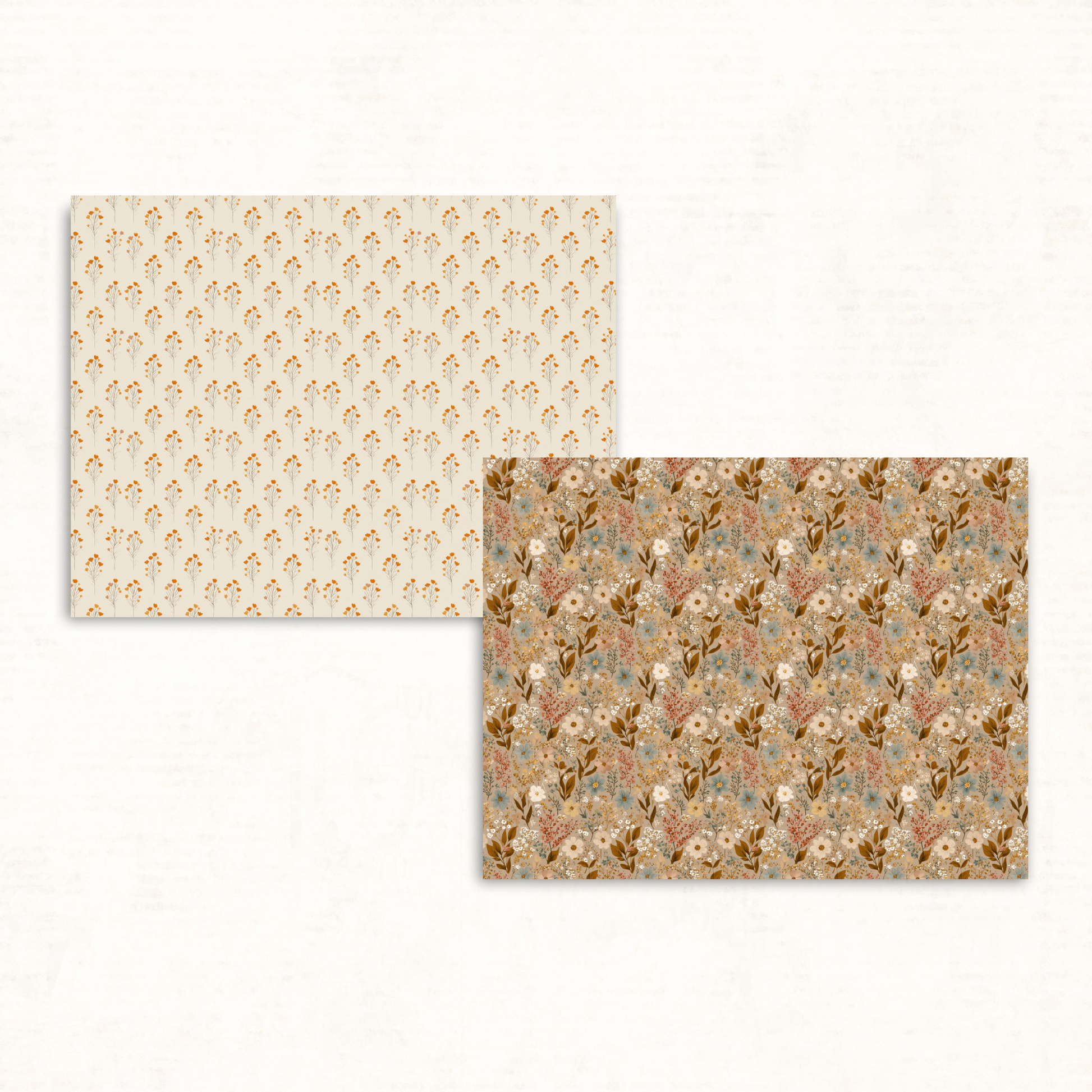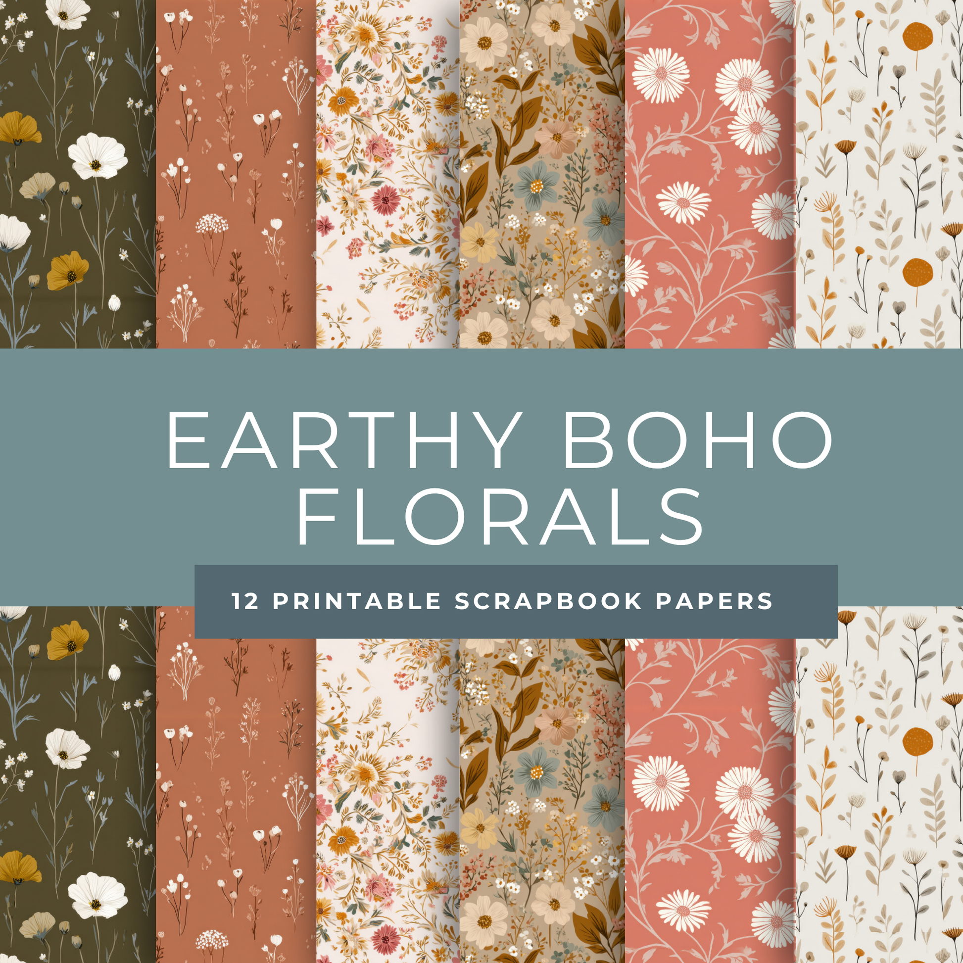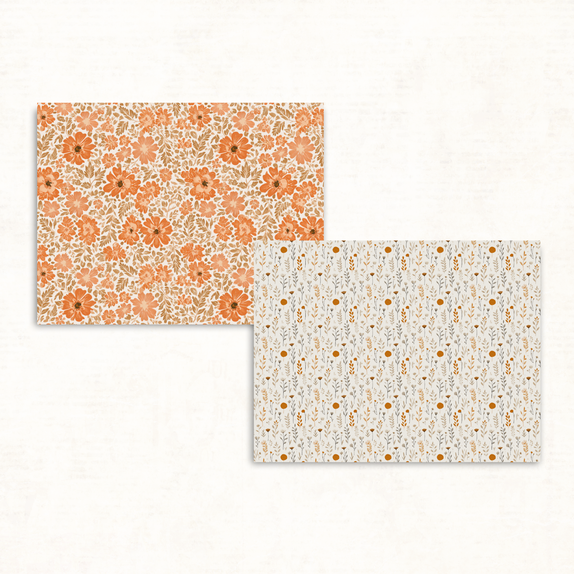 Earthy Boho Floral Scrapbook Papers – Printable Neutral & Deep Orange Backgrounds for Junk Journals