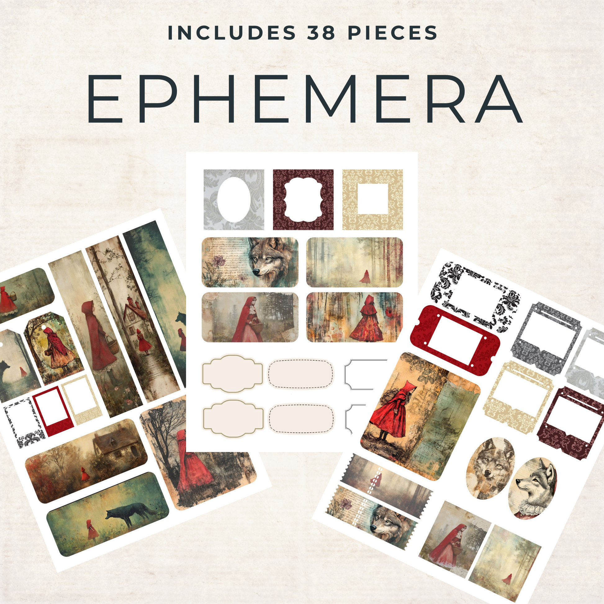 Red Riding Hood Junk Journal Kit – Vintage Fairy Tale Printable Ephemera & Scrapbook Pages