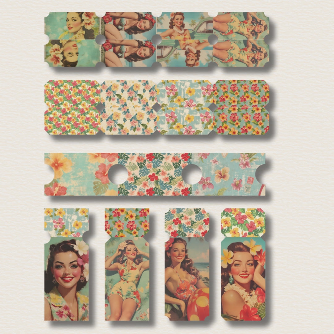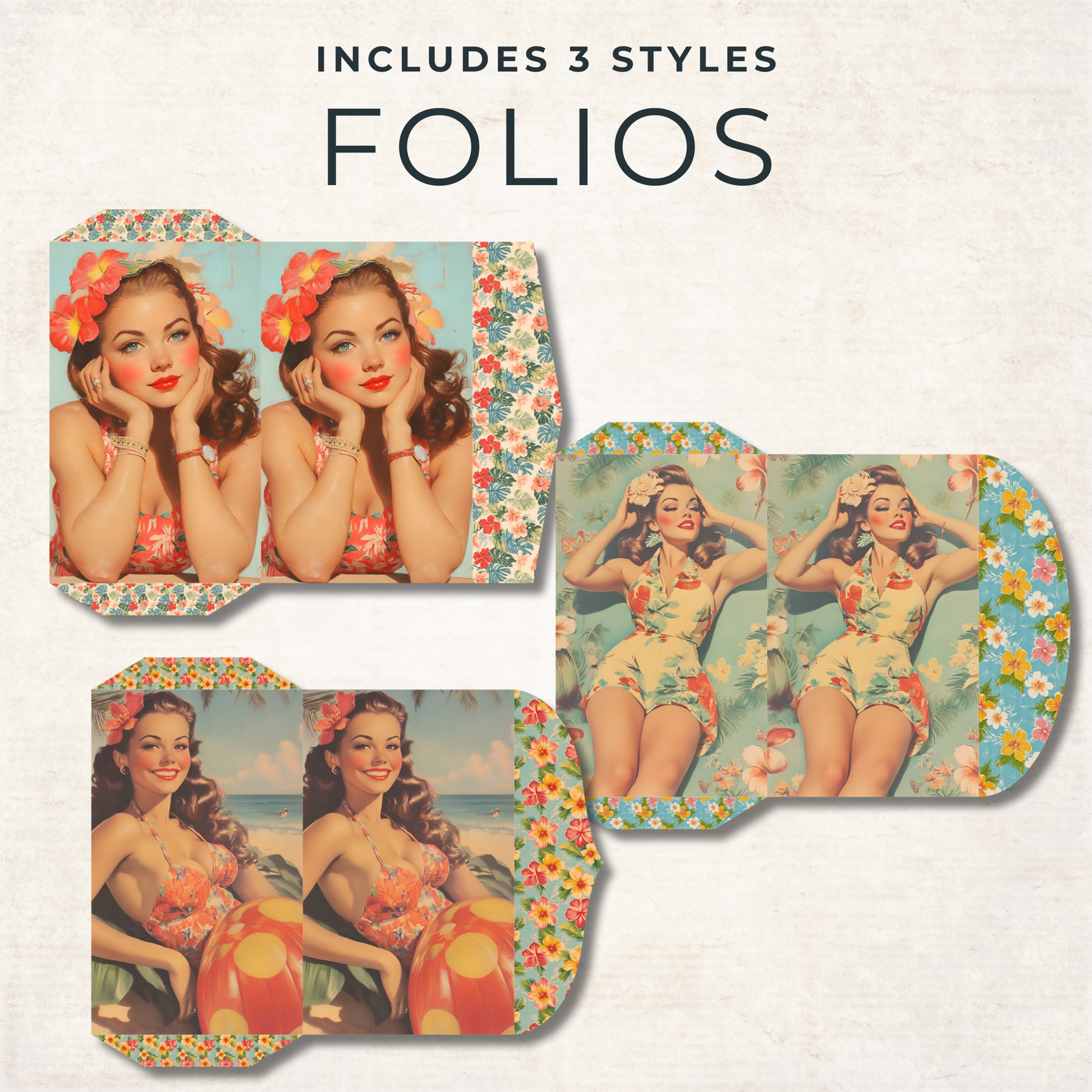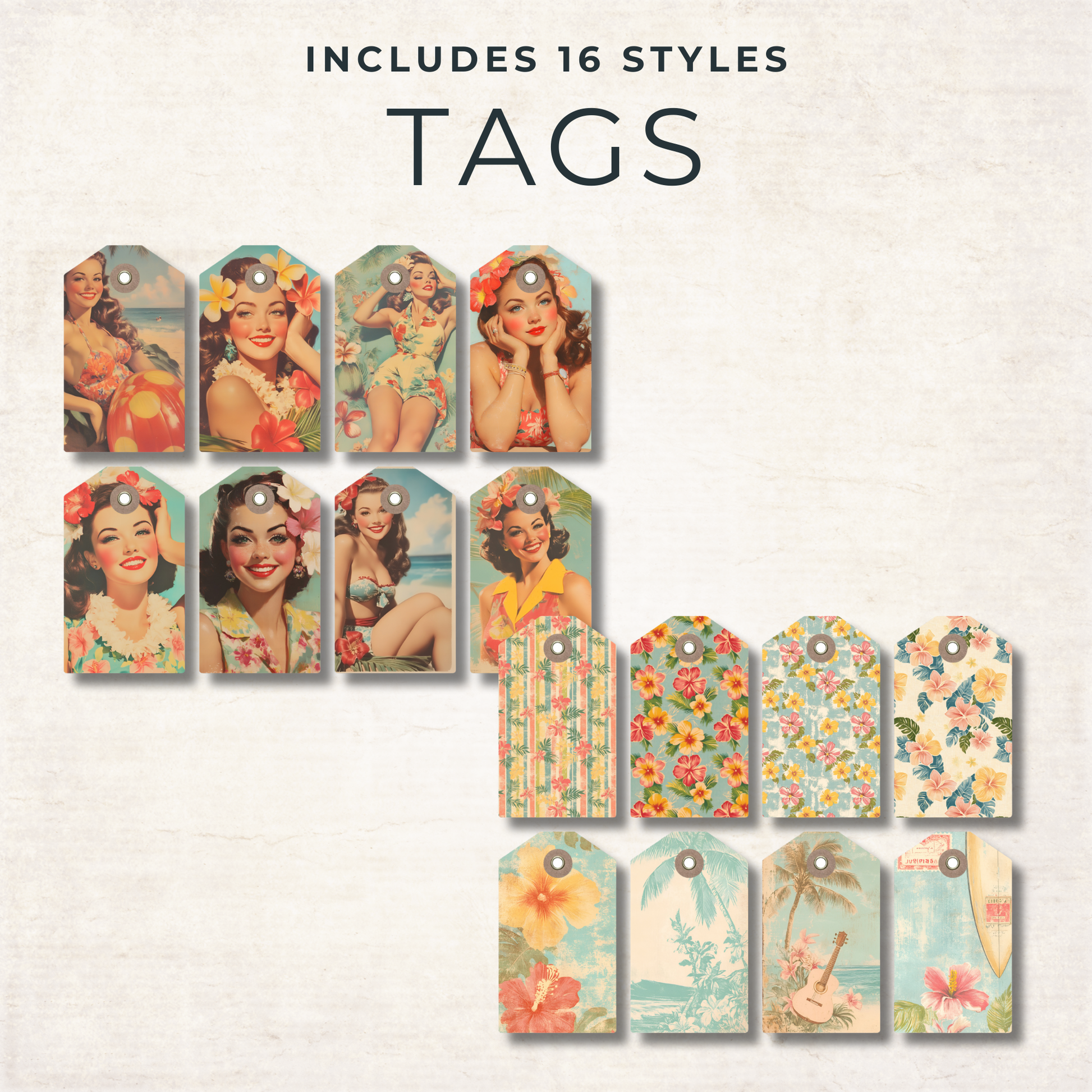 Preserve your beachside memories with this Retro Hawaii Junk Journal Kit. Packed with nostalgic tropical flair, this digital download features vintage hula girls, retro pin-ups, and colorful scrapbook elements for your next creative escape.