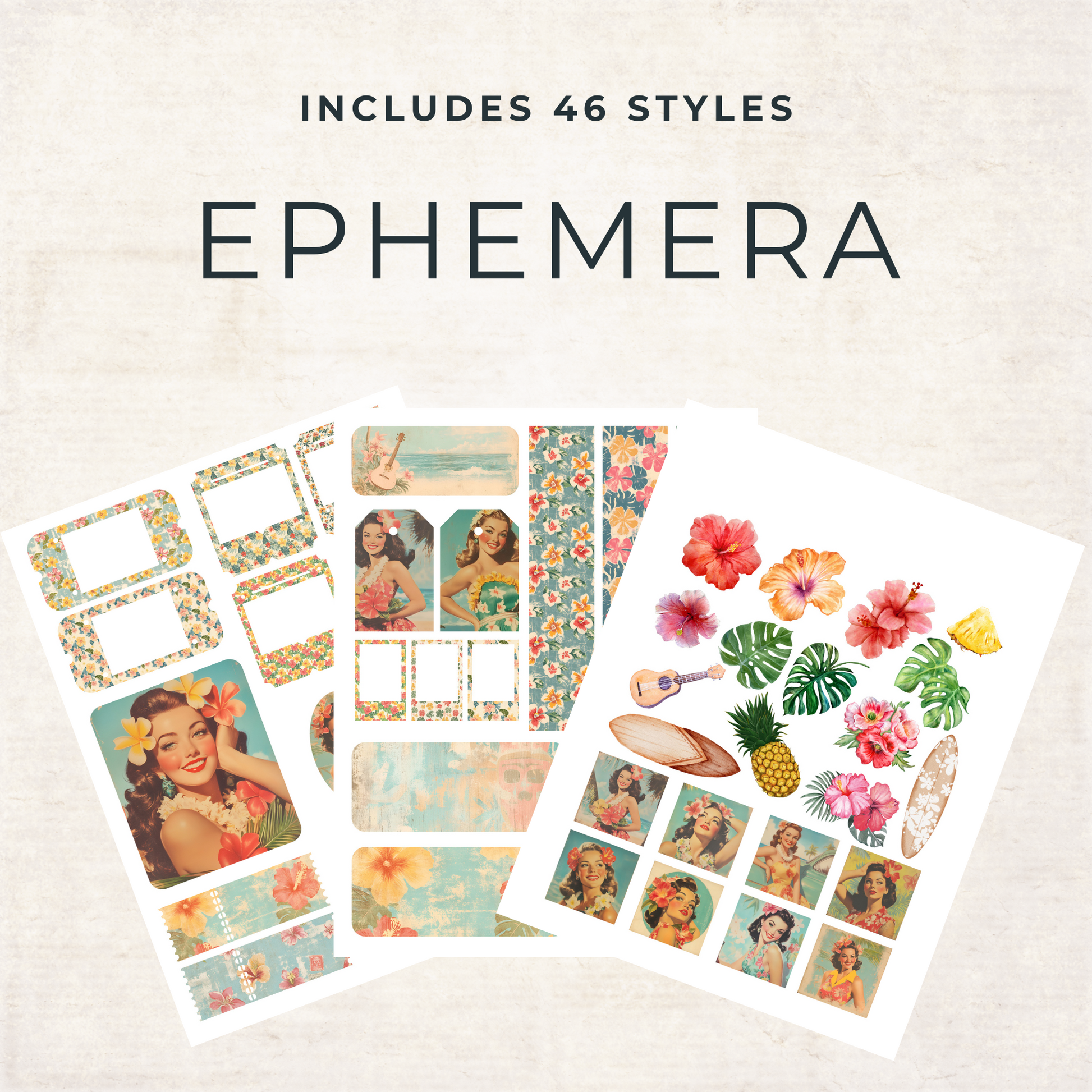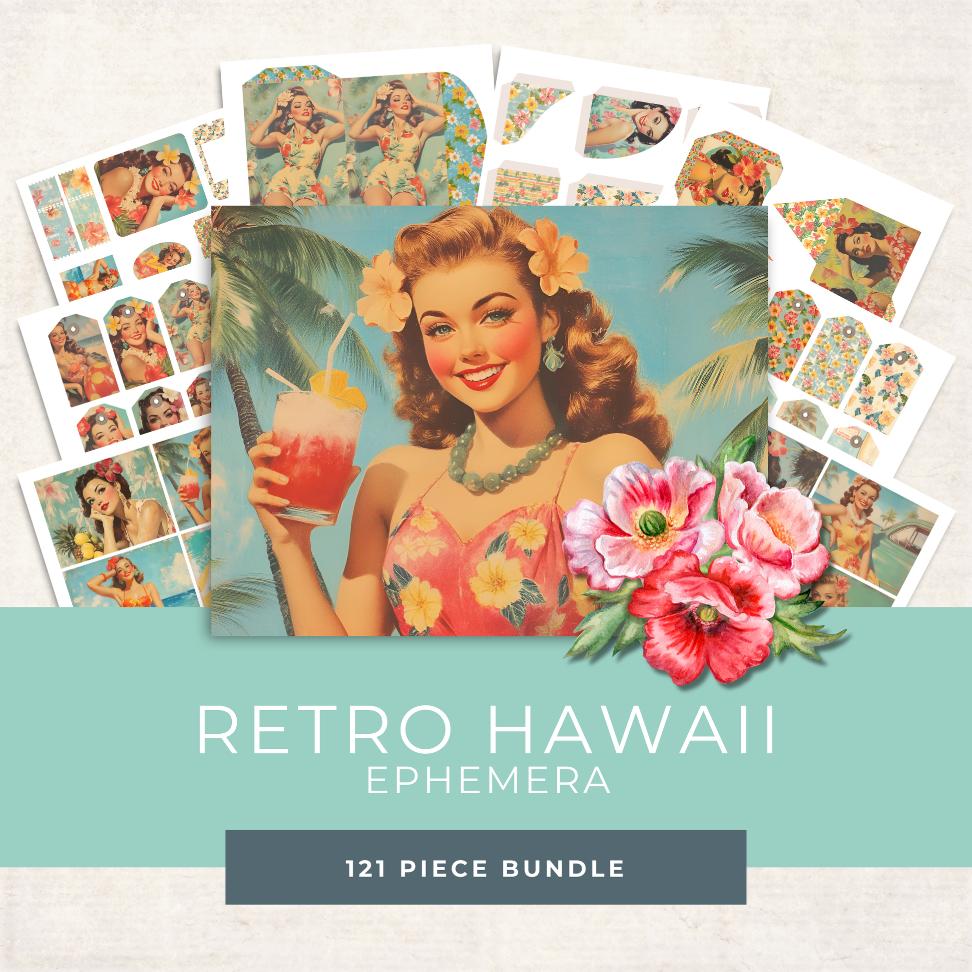 Retro Hawaii Junk Journal Kit – Vintage Tropical Scrapbook Ephemera & Printable Pin-Up Pages