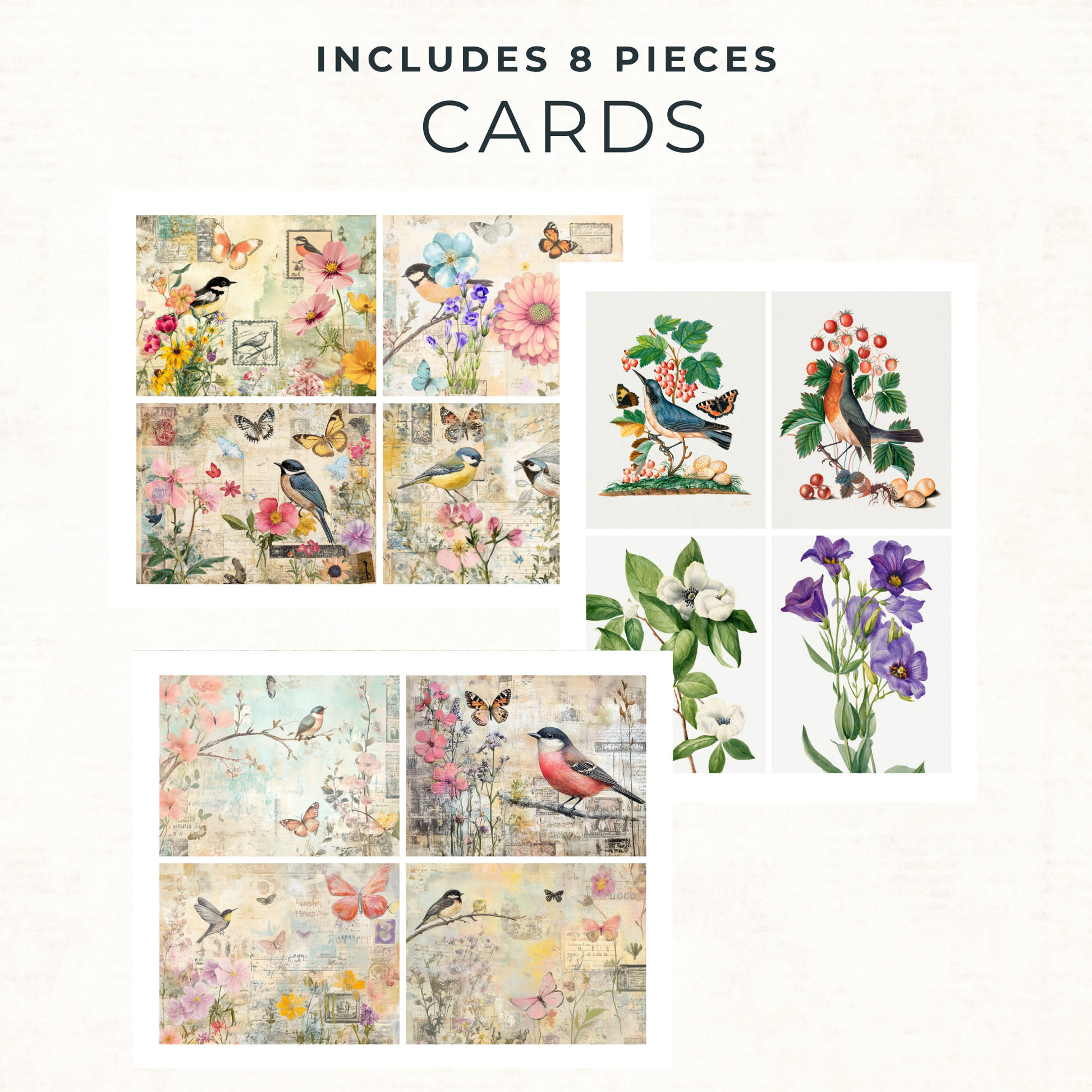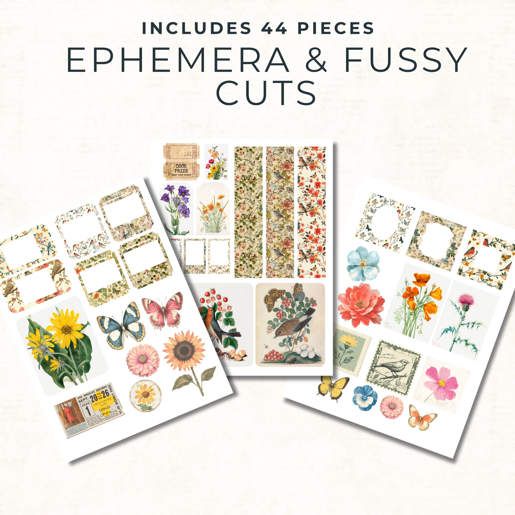 Complete your vintage-inspired crafts with this Shabby Chic Ephemera Pack. Designed to match our collage and scrapbook sets, this printable bundle includes elegant cut-outs of birds, butterflies, florals, and textured paper pieces.